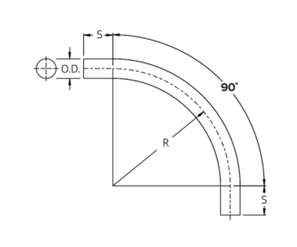 Dugi zavoje za radijus može se zavariti MIG, a zatim fino obraditi i poliran od strane TIG -a za besprijekoran izgled i smanjeno trenje u odnosu na tekućinu. Kad cijev iznenada promijeni smjer, uzrokuje gubitak tlaka unutar cijevi. Nehrđajući čelik 90 ° dugačak zavoj s radijusom dizajniran je tako da minimizira gubitak tlaka tekućine trenja. Dovoljno je prostora i volumena koji omogućuju šire zavoje i proizvesti manje gubitka tlaka.